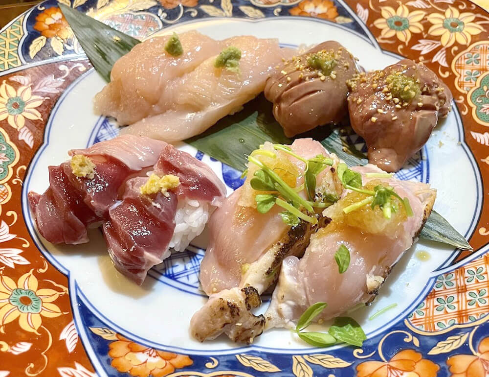 さらに、鮮度に絶対の自信があるからこそお出しできる鳥刺しのにぎりもぜひ。口に入れた瞬間、地鶏の旨みと酢飯がふわりと溶け合い、思わず笑顔になる一皿です。